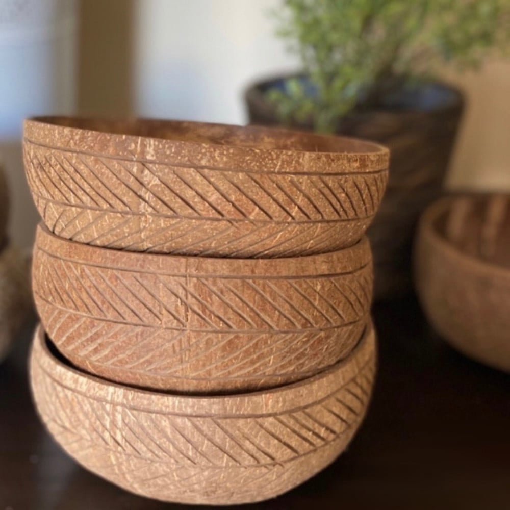 مصنوعة من قشور جوز الهند، وتساهم هذه المنتجات في نمط حياة صديق للبيئة. الزبادي مصنوعة يدويًا من فيتنام بشكل جميل ومميز